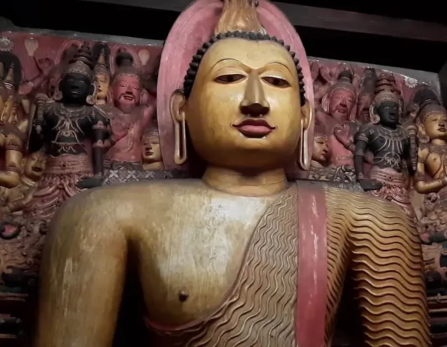 Among the many statues found in the cave vihara , the one that is enclosed in a glass cupboard is considered to be the most precious. It has been made of pure gold. It is believed that the statue had found its way into the cave from sky. (The legend related to this incident is explained in detail in the SK Videos channel. Watch the video)